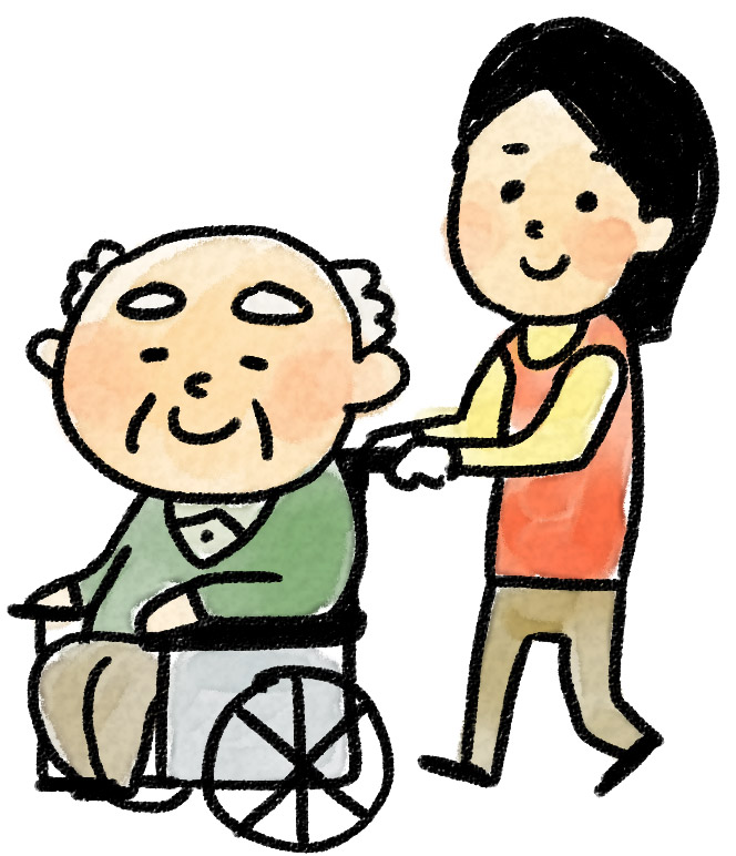 おばあちゃんの車椅子を押して介助するイラスト フリー素材 介護看護リハビリのフリー素材集